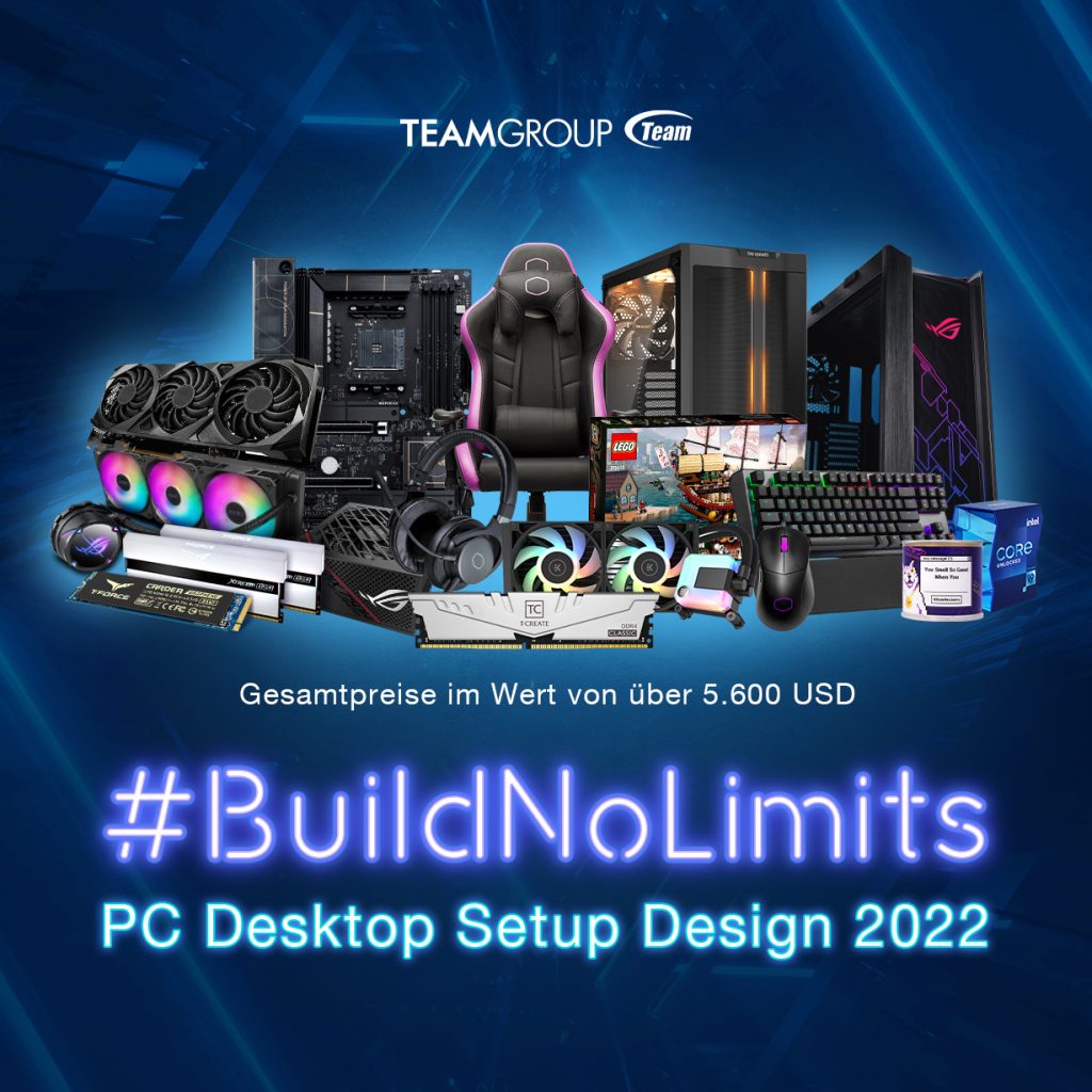 Die Einreichungen für die erste Runde des #BuildNoLimits PC Desk Setup-Wettbewerbs sind heute geöffnet und enden am 11. Mai 2022. TEAMGROUP wird Einreichungen bekannt geben, die es in das Finale schaffen, und Freunde auf der ganzen Welt einladen, über ihre PC-Setup Favoriten abzustimmen. Gewinner, lobende Erwähnungen und glückliche Teilnehmer werden am 10. Juni 2022 auf der offiziellen TEAMGROUP-Website bekannt gegeben. TEAMGROUP verbindet globale PC-Fans im Geiste von Build No Limits, indem es kreative Arbeiten aus der ganzen Welt sammelt und alle herzlich dazu einlädt. Weitere Informationen zum Wettbewerb findest Du auf der offiziellen TEAMGROUP-Website und auf der Facebook-Seite. Wir warten auf dein Desksetup!