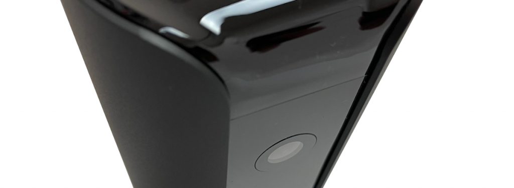 Doch beherbergt das Canary View auch einen Lautsprecher auf der Oberseite des Zylinders, dessen Fläche gleichzeitig berührungssensitiv auf leichten Druck reagiert. Diese Sensitivität dient uns später bei der Einrichtung, die Kamera mit unserem Smartphone zu koppeln um das WLAN-Passwort unseres Routers auf die Kamera zu übertragen.