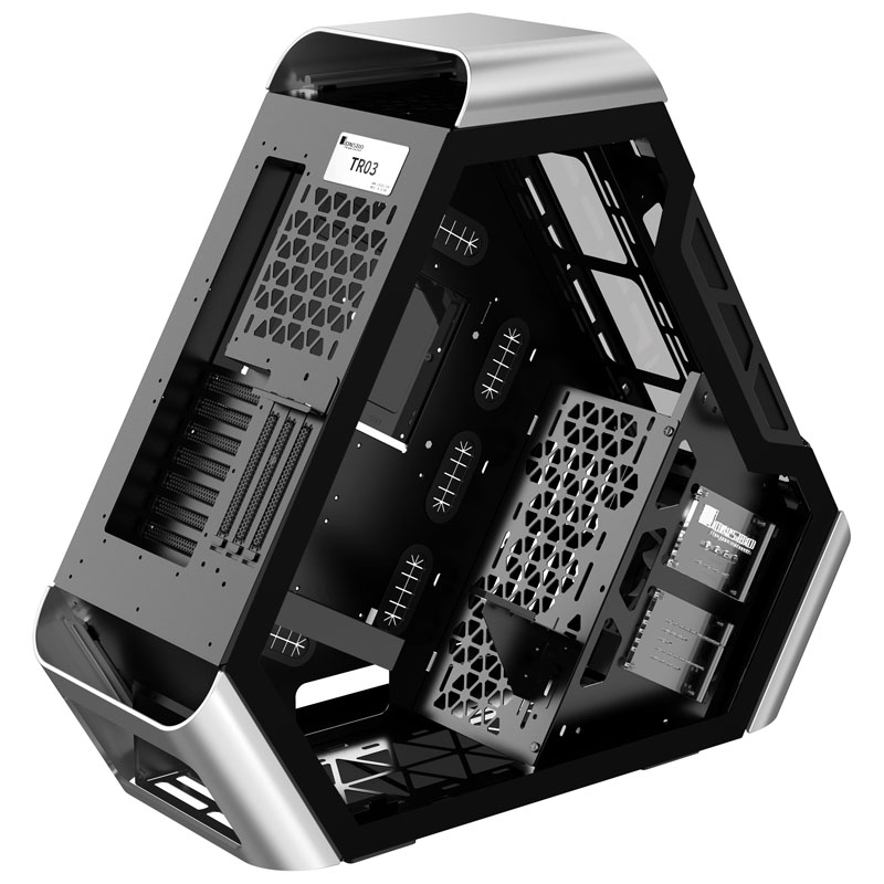 Insgesamt können die Gehäuse der TR03-Serie bis zu zehn 120-mm-Lüfter aufnehmen. Dank der zahlreichen Montageoptionen für Lüfter und clever platzierten Lufteinlässen ist eine optimale Luftzufuhr gewährleistet. Filter im Boden und der Front halten das System staubfrei. Für wassergekühlte Systeme kann in der Front des Gehäuses ein 360-mm-Radiator platziert werden.