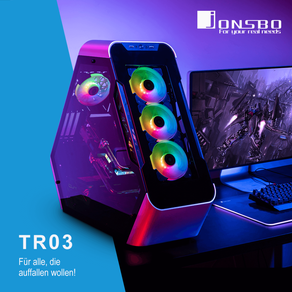 Berlin, 22.09.2020 – Der chinesische Gehäusespezialist Jonsbo stellt mit den TR03-Showcases außergewöhnliche High-End-Gehäuse für ATX-Motherboards vor, die auf jedem Schreibtisch einen imposanten Eindruck hinterlassen. Das futuristische Design mit großen Elementen aus Aluminium und Tempered Glass ermöglicht einen ungehinderten Blick ins Gehäuseinnere und setzt so gekonnt jede Hardware in Szene. Besonders in Verbindung mit einer RGB-LED-Beleuchtung spielt das Show-Gehäuse seine Stärken aus.