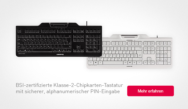 Auerbach, 13. Februar 2018 – CHERRY, der Spezialist für Computer-Eingabegeräte, kündigt mit der KC 1000 SC-Z eine besonders sichere, kabelgebundene Tastatur mit einem integrierten Klasse-2-Kartenlesegerät an. Hergestellt sowie entwickelt nach BSI-zertifizierten Common-Criteria-Anforderungen, bietet die neue Smartcard-Tastatur höchste Sicherheit am Arbeitsplatz und spart dank 2-in1-Aufbau Platz auf dem Schreibtisch. Das integrierte Chipkarten-Terminal erfüllt die Anforderungen rund um elektronische Signaturen, Authentifizierung, Datenverschlüsselung und Zugriffsberechtigungen.