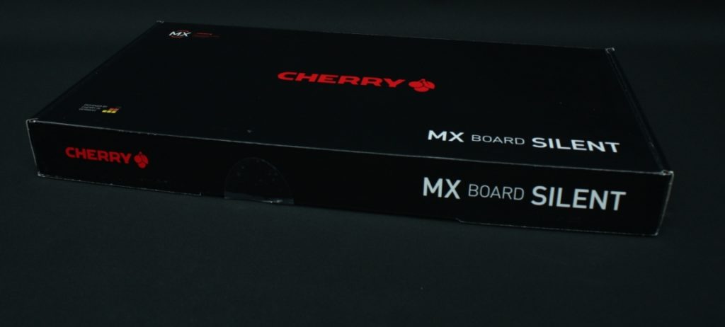Das MX Board Silent, kommt in einer schlichten, schwarzen Verpackung. Gut erkennbar auf der Vorderseite, das Logo von Cherry mittig auf dem Karton und die Bezeichnung des Inhaltes unten rechts in der Ecke.