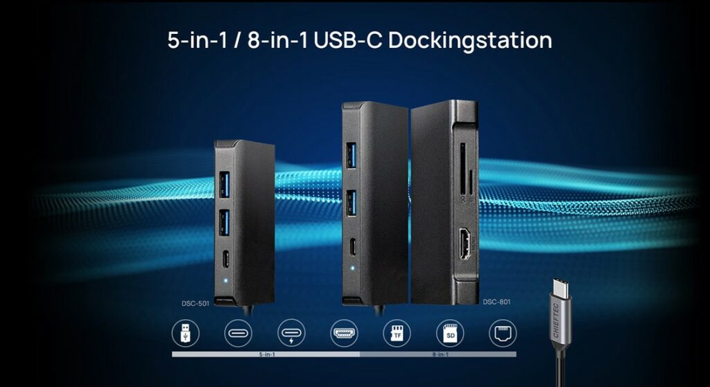 Chieftec erweitert hierzu noch das Produktsortiment und startet mit zwei USB-C Dockingstationen um Notebook Nutzern zusätzliche Funktionalität und Flexibilität zu ermöglichen. Beide Dockingstationen kommen mit Power Delivery 3.0 mit einer Stromversorgung bis zu 60W.