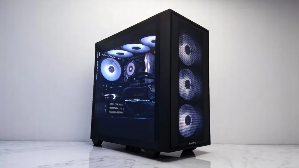 Auch wenn es sich beim CHIEFTECH Hunter 3 um ein unauffälliges Gehäuse handelt, kann es mit der Ausleuchtung durch die Lüfter für Aufsehen sorgen. Grenzen werden der Beleuchtung nur in der ARGB-Software des Mainboards bzw. im Umfang des ARGB-Controllers gesetzt. So hat der Nutzer stets die Wahl, ob das System optisch auffällig leuchtend oder stockdunkel arbeitet.