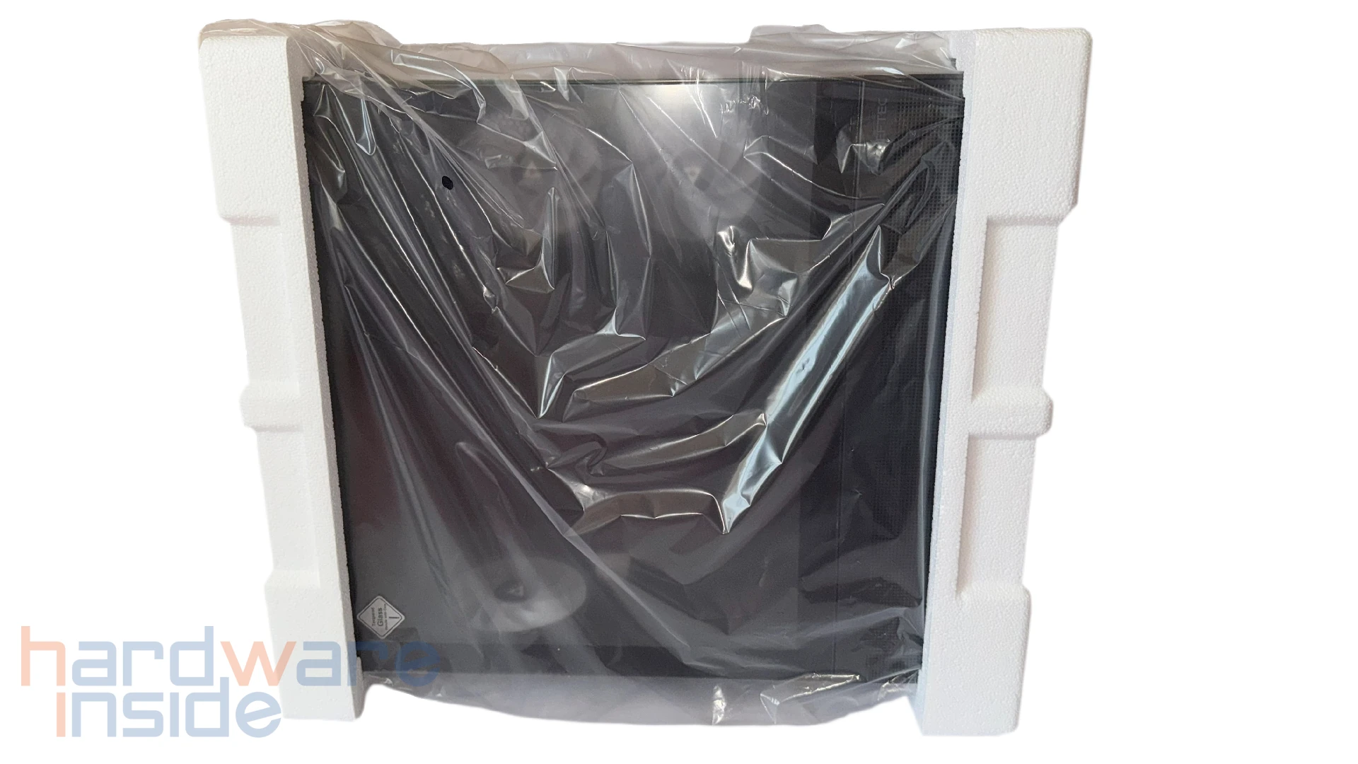 Im Inneren des Kartons befindet sich das Gehäuse sicher zwischen zwei dicken Styroporpolstern und einer Kunststofffolie. Zusätzlich dazu kommen noch fünf Kabelbinder, drei Abstandshalter, sechs Netzteilschrauben, acht HDD-Schrauben, ganze achtzehn Mainboardschrauben und eine Befestigung für das Seitenpanel hinzu. In der Rückseite des Cases befindet sich noch eine weitere Tüte mit zusätzlichen Kabelbindern.