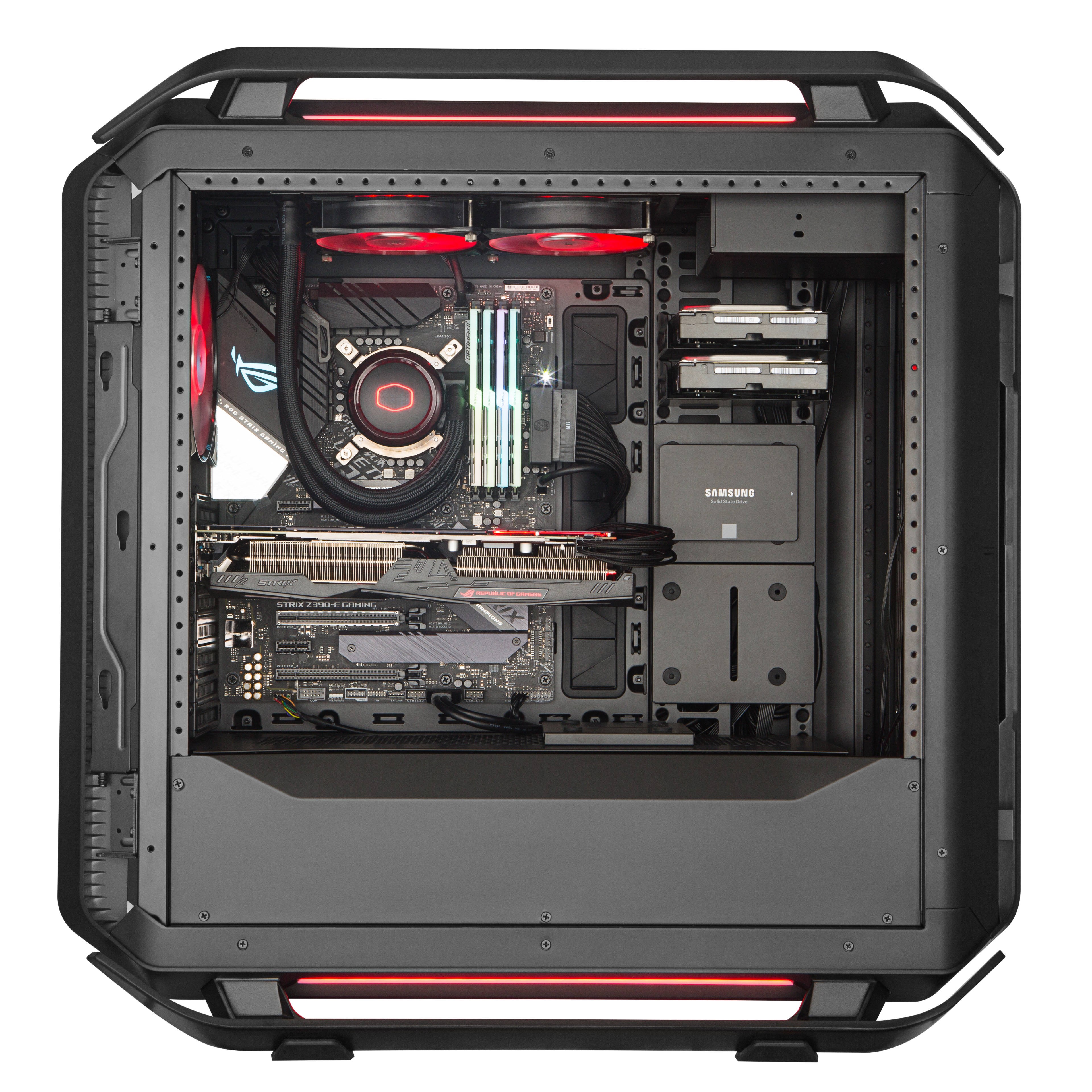 Während die Panels und Balken pechschwarz sind, weist das gebogene Hartglas im Vergleich zu seinem Vorgänger einen helleren Farbton auf. Builds werden in voller Panoramasicht durch das doppelt gebogene Echtglas-Seitenteil gezeigt und zeigen ein Arsenal an verfügbares Zubehör. Die Anhebung der Messlatte in der COSMOS C700P Black Edition bedeutet mehr Out-of-the-Box-Teile für den Bau eines Out-of-this-World-Rigs.