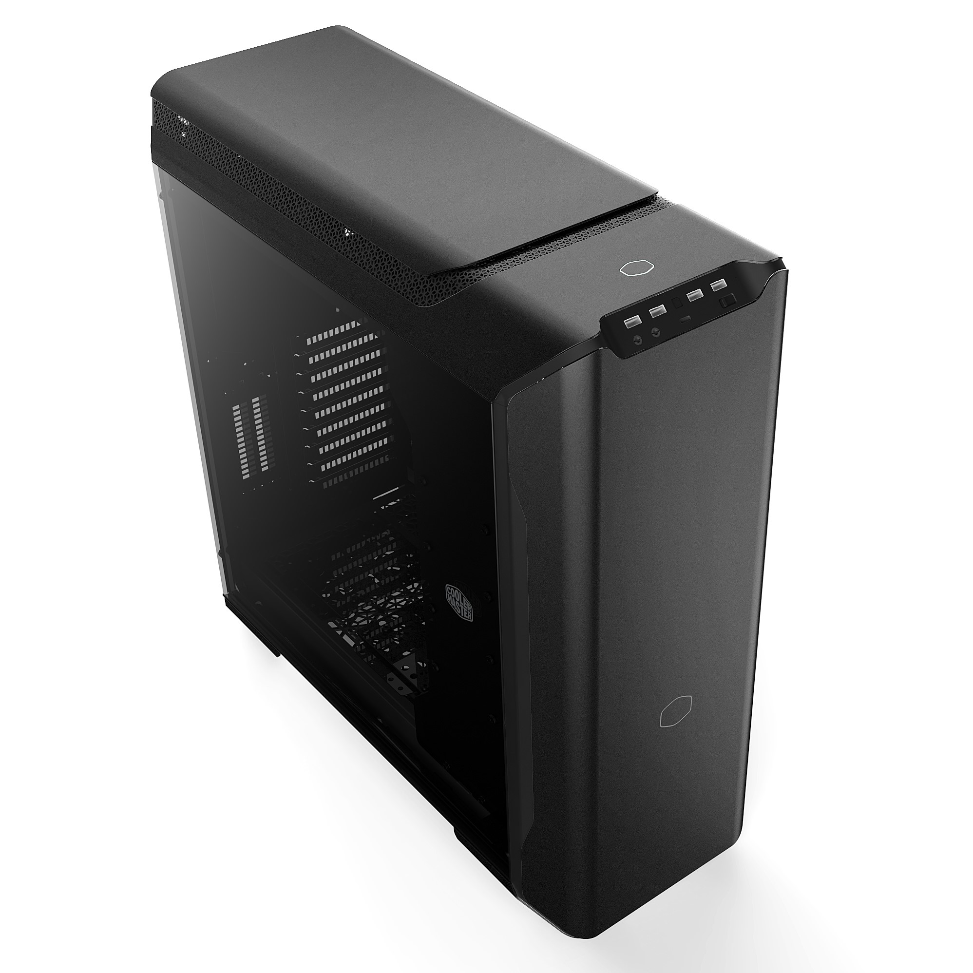 Die oberen und vorderen Aluminiumpaneele sind schwarz eloxiert, was die finstere Seite des MasterCase SL600M hervorhebt.