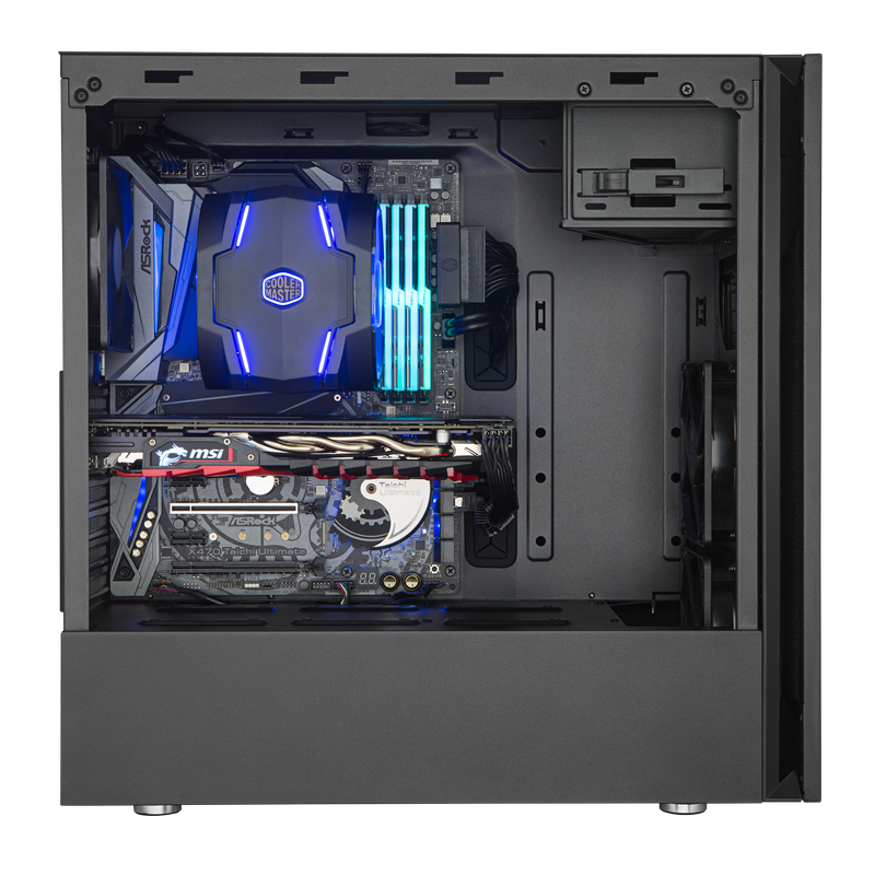 Während die Panels und Balken pechschwarz sind, weist das gebogene Hartglas im Vergleich zu seinem Vorgänger einen helleren Farbton auf. Builds werden in voller Panoramasicht durch das doppelt gebogene Echtglas-Seitenteil gezeigt und zeigen ein Arsenal an verfügbares Zubehör. Die Anhebung der Messlatte in der COSMOS C700P Black Edition bedeutet mehr Out-of-the-Box-Teile für den Bau eines Out-of-this-World-Rigs.