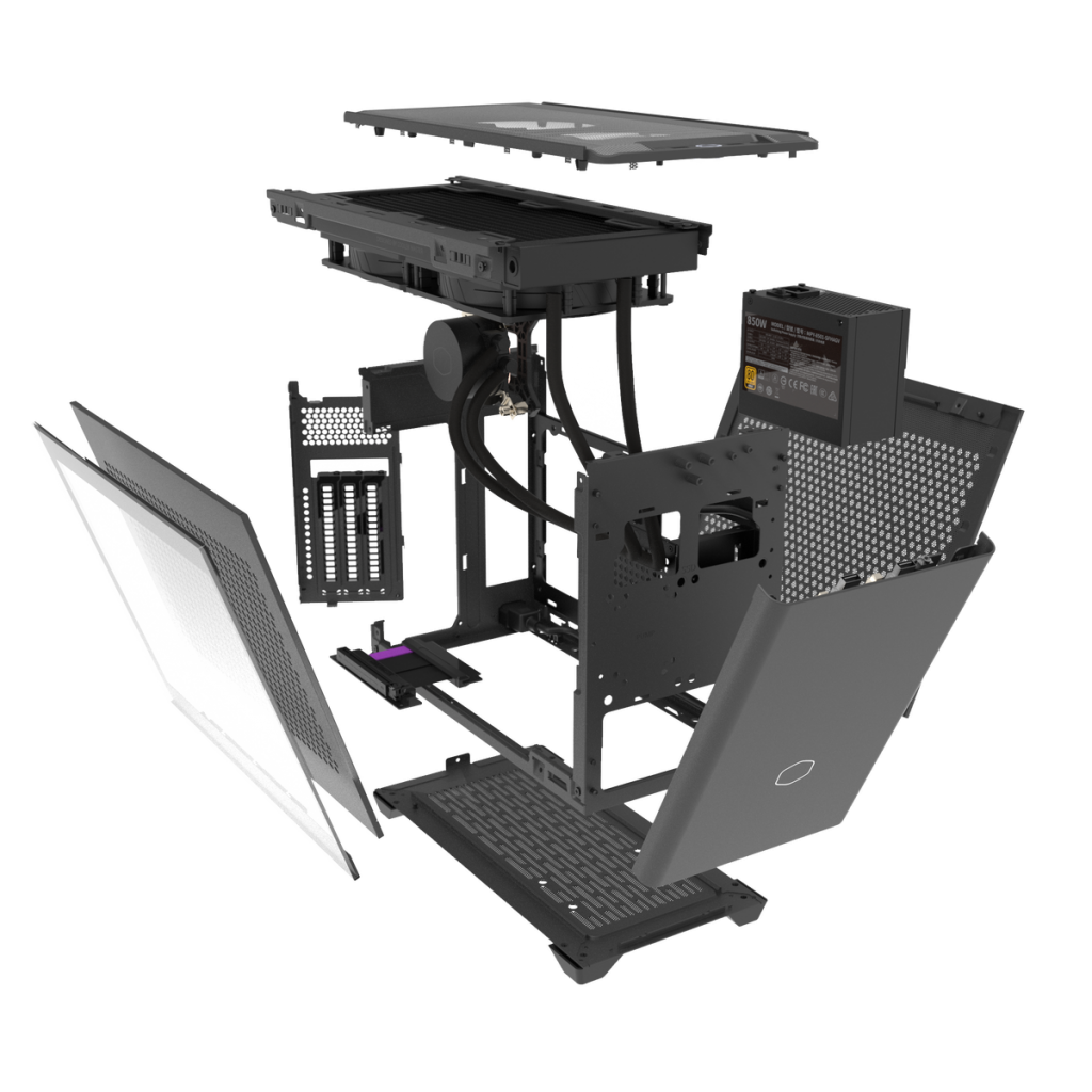 Die MasterBox NR200P MAX kommt in der Farbe Schiefergrau und bietet ein modernes, unauffälliges Erscheinungsbild. Es ist eines der benutzerfreundlichsten und vielseitigsten SFF-Gehäuse auf dem Markt. Obwohl es auf den ersten Blick Ähnlichkeiten mit der höchst erfolgreichen MasterBox NR200(P) aufweist, verfügt die MasterBox NR200P MAX über ein exklusives Gehäuselayout mit einem im Deckel vorinstallierten 280-mm-Radiator sowie einem 80-Plus-Gold-zertifizierten 850-Watt-Netzteil, deren Kabel bereits vorinstalliert und vorverlegt sind. Die Kühlung sowie die Netzteilkabel wurden dabei für optimales Aussehen und eine mühelose, zeiteffiziente Installation bereits an die optimalen Längen angepasst.