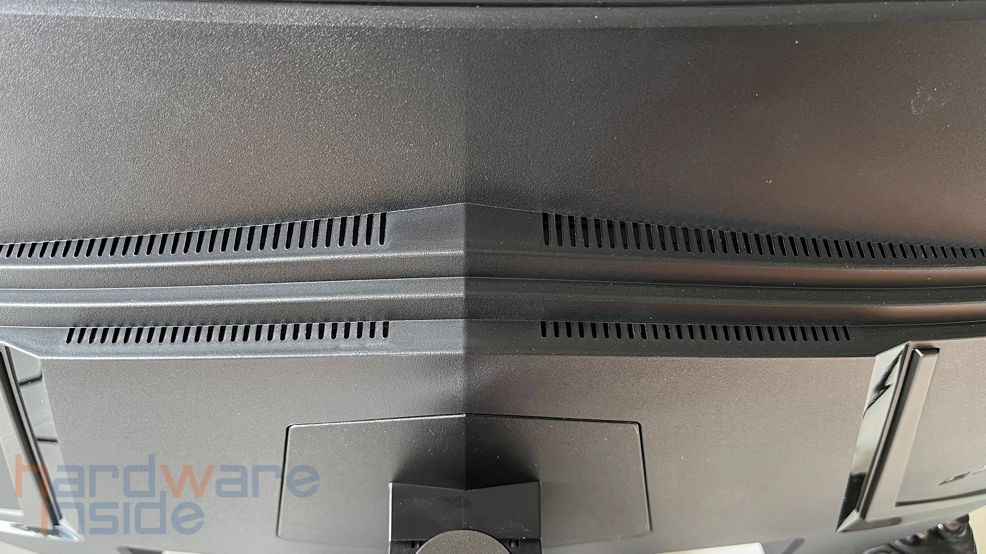 Weitere Luftschlitze erkennen wir auf der Oberseite des Monitors direkt über der VESA-100-Halterung des Standfußes.