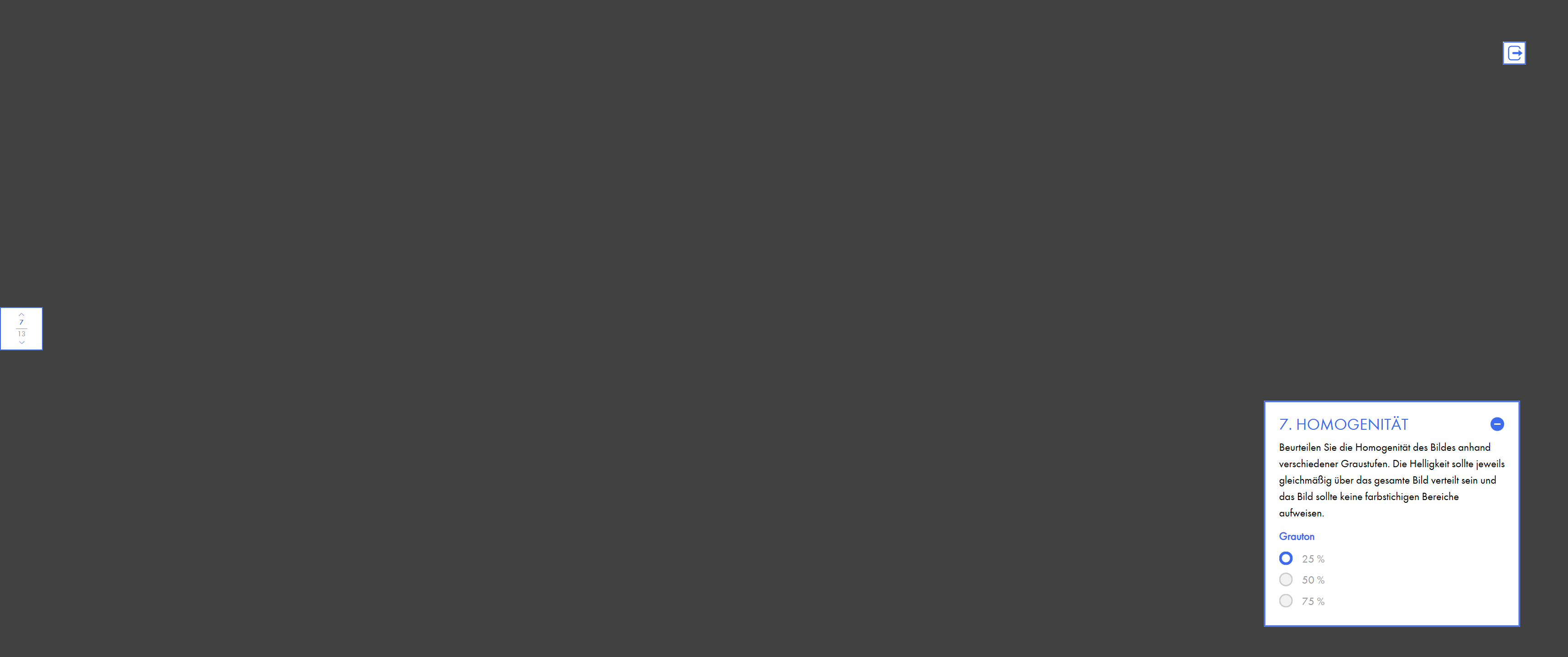 Wir beurteilen die Homogenität des Bildes anhand verschiedener Graustufen. Die Helligkeit sollte gleichmäßig über das Bild verteilt sein und das Bild sollte keine farbstichigen Bereiche aufweisen. Dabei variieren wir zwischen drei verschiedenen Grautönen und stellen fest, dass sich der GM34 an den Ecken und Kanten minimal dunkler einfärbt. Das weist auf eine kleine Schwäche in der Ausleuchtung nahe der Bildschirmränder hin.