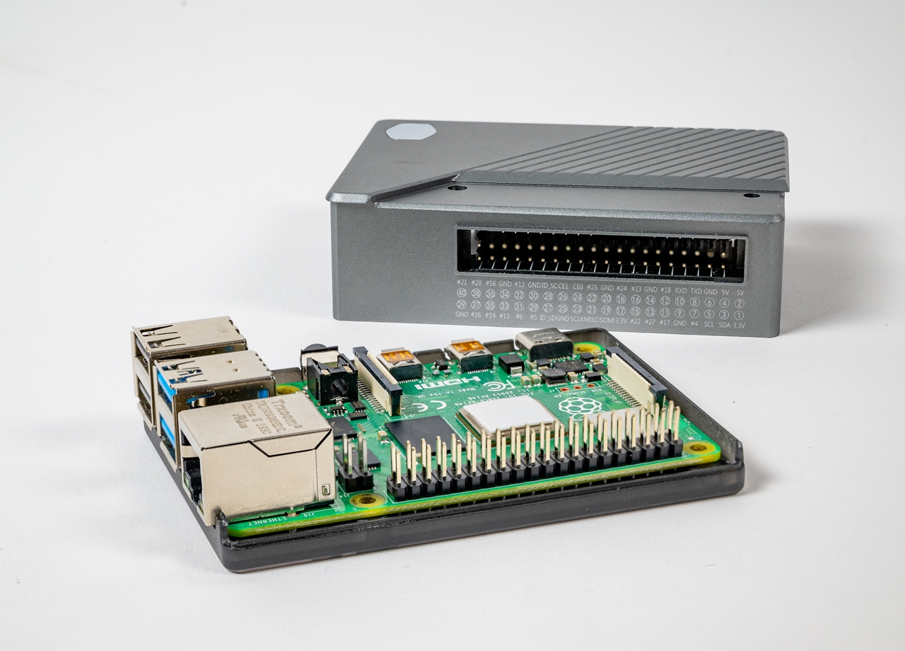 Das Pi Case 40 wurde spezielle für Raspberry-Pi-Boards entwickelt und vereint eine Vielzahl von Funktionen in einem stabilen und langlebigen Gehäuse. Das Gehäuse umschließt die Raspberry-Pi-Platine mit einer schlanken Aluminiumschale, die zusätzlich durch einen hochwertigen TPU-Stoßfänger geschützt ist. Nach dem Zusammenbau bleibt das System dank des Aluminiumgehäuses auch bei hohen Taktfrequenzen kühl und absolut geräuschlos, ohne dass ein Lüfter erforderlich ist. Zusätzlich zu dem hohen Schutzgrad und der hervorragenden Kühlung bietet das Pi Case 40 einen direkten Zugang zu den Anschlüssen des Boards und verfügt über einen Netzschalter. Alle Anschlüsse sind an die Seiten geführt, was für eine bessere Optik sorgt und die Zugänglichkeit vereinfacht.