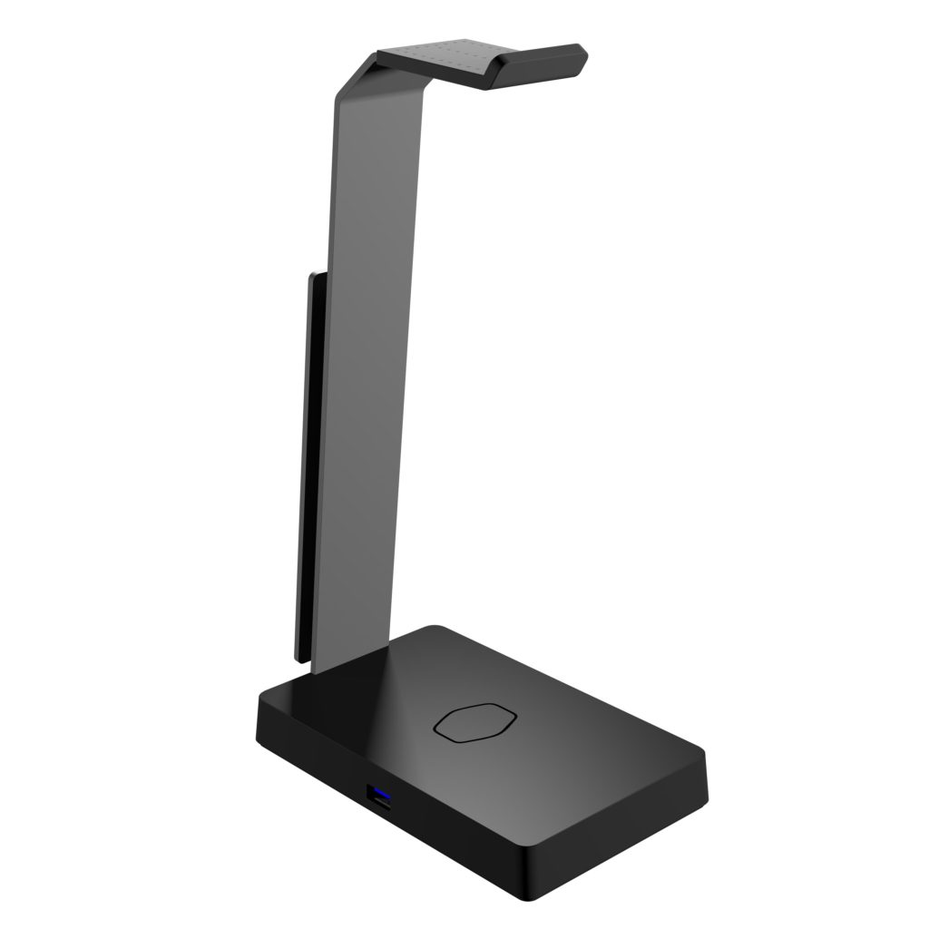 Das GS750 nicht nur ein einfacher Halter für euer Headset. Es ist mit einem drahtlosen QI-Ladegerät ausgestattet um kompatible Smartphones darüber aufzuladen. Außerdem verfügt es über zwei USB 3.0 Ports, einer Beleuchtung im Standfuß sowie einer integrierten 5.1 Soundkarte. Die Beleuchtung sowie auch die Soundkarte können über die Cooler Master Software Portal gesteuert bzw. eingestellt werden.