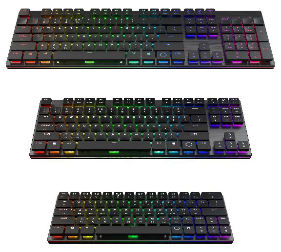 Bei den Modellen SK621, SK631 und SK651 handelt es sich um schlanke mechanische Tastaturen mit der perfekten Balance zwischen „Work and Play“. Die SK-Serie verfügt über Cherry MX-Schalter mit niedrigem Profil, die einen reduzierten Auslöseweg mit der gleichen Langlebigkeit und Präzision bieten wie die normalen roten Schalter. Die Tastaturen können verkabelt über einen entfernbares Typ-C-USB-Kabel oder über Bluetooth 4.0 verwendet werden, wobei bis zu drei Geräte gleichzeitig unterstützt werden. Die Hintergrundbeleuchtung, die umgebenden Lichtbalken und Makros können durch die einfach zu bedienende Portal-Softwareanwendung von Cooler Masters vollständig angepasst werden. Die On-the-Fly-Steuerung ermöglicht eine Echtzeitanpassung von Beleuchtung und Makros ohne Software, einschließlich Windows Lock On / Off, um ein versehentliches Auslösen während des Spiels zu verhindern. Benutzer können zwischen drei Größen je nach wählen. Die SK621 ist kompakt und verfügt über ein Layout mit 65 Tasten, sie eignet sich perfekt für unterwegs. Die SK631 hat ein TenKeyless-Layout für Benutzer mit wenig Platz auf dem Schreibtisch und die SK651 verfügt über ein vollständiges Layout.