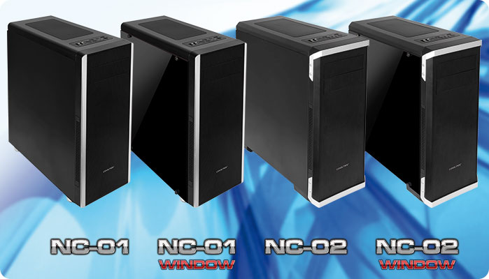 Mit den Gehäusen der NC-Serie präsentieren wir zwei edle Midi-Tower mit Zier-Elementen aus Aluminium in der Front. Die Gehäuse zeichnen sich durch ihr modernes Design und das besonders ansprechende Preis-/Leistungsverhältnis aus. Die NC-01 und NC-02 sind sowohl mit Window-Seitenteilen aus „tempered glass“ als auch mit geschlossenen Seitenteilen erhältlich.