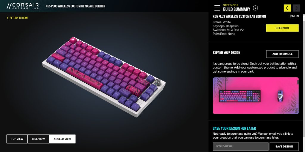 Die Wireless-Gaming-Tastatur K65 PLUS und die Wireless-Gaming-Maus M75, die bisher zusammen über 70 Auszeichnungen erhalten haben, bilden eine starke Ausgangsbasis für Benutzer, die ihre Peripheriegeräte personalisieren möchten. CORSAIR Custom Lab wird in allen CORSAIR Webstores in der EU erhältlich sein, wobei die Tastaturlayouts für NA, UK, DE und FR zum Start verfügbar sind.