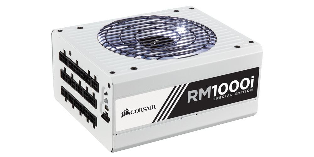 Die limitierten Netzteile der RM1000i Special Edition wurden speziell angepasst und mit einem weiß beleuchteten, flüsterleisen 120-mm-LED-Lüfter mit FDB-Lager (Fluid Dynamic Bearing) und einzeln ummantelten CORSAIR-Premium-Kabeln in passendem Weiß ausgestattet.