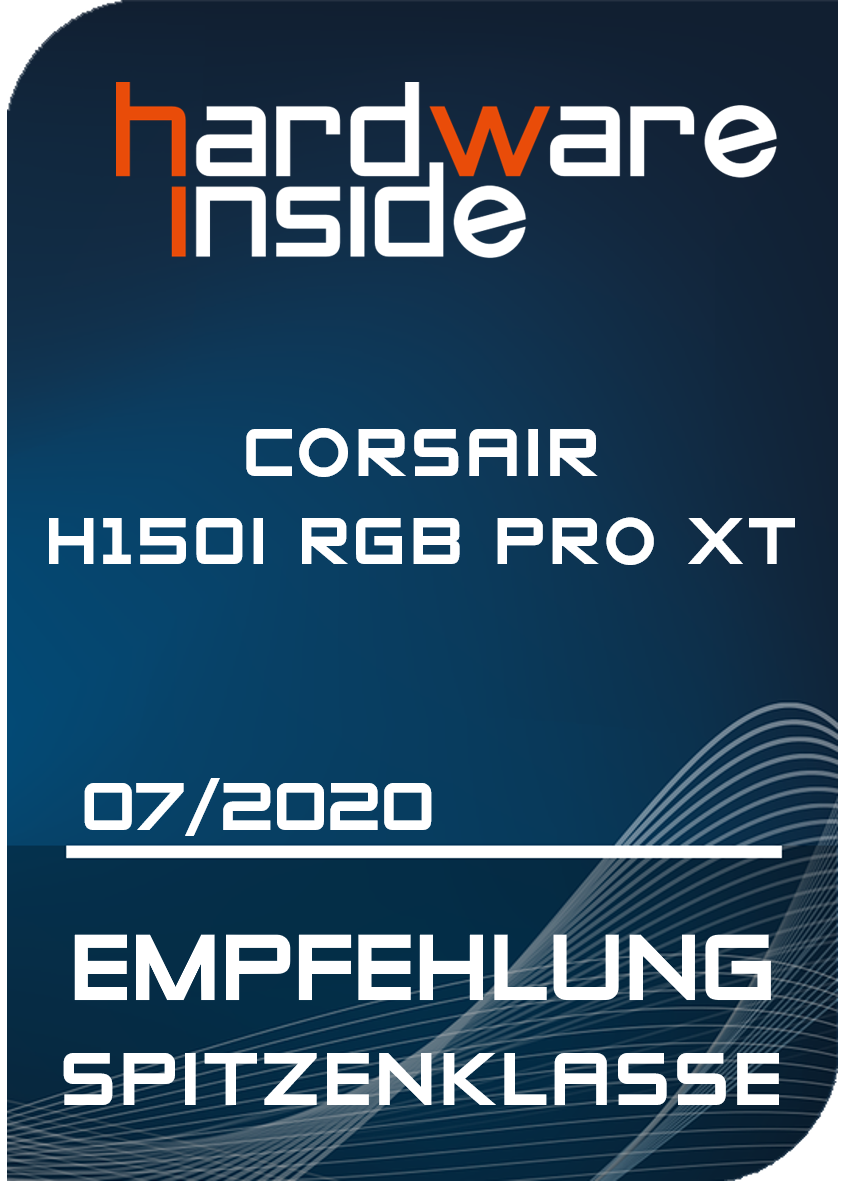 Für einen Preis von aktuell ca. 175 € erhält der Käufer mit der Corsair H150i RBG PRO XT eine leistungsstarke AiO-Wasserkühlung. Neben der Kühlleistung konnte uns sowohl die Optik als auch die Verarbeitungsqualität überzeugen. Eine RGB-Beleuchtung findet man bei der iCUE RGB PRO XT Serie nur bei der Pumpe, in der 16 RGB LEDs verbaut sind. Gesteuert werden diese über iCUE – genauso wie die Leistungseinstellungen und weitere Features der Wasserkühlung. Die Corsair H150i RGB PRO XT konnte uns in allen Punkten überzeugen, sodass wir ihr einen Spitzenklasse-Award vergeben.