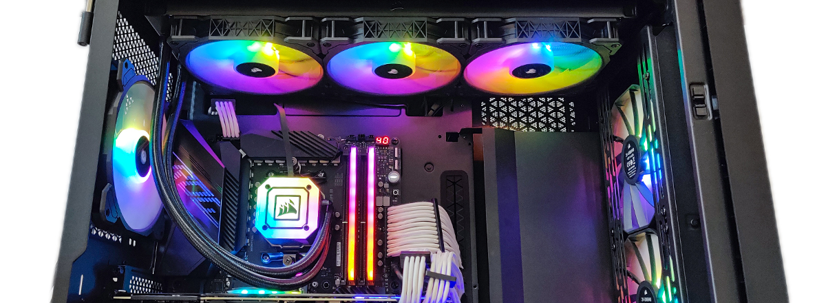Dank der Software Corsair iCUE sind die Individualisierungsmöglichkeiten quasi grenzenlos. Sowohl die jeweils 8 RGB-LEDs pro ML140 Lüfter als auch die 33 RGB-LEDs der Pumpeneinheit können unabhängig voneinander angesteuert werden.