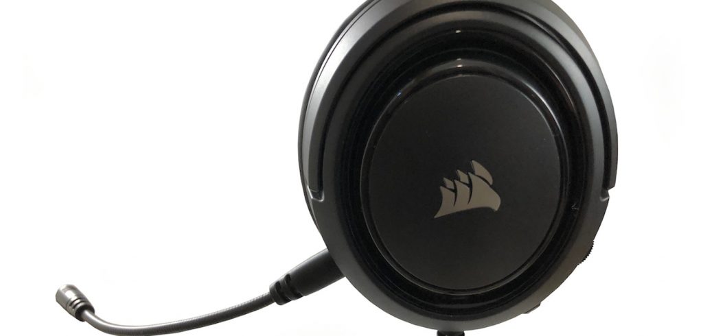 Das Corsair-Logo hingegen befindet sich auf den Ohrmuscheln und sticht durch seine metallische Oberfläche hervor. Gleichzeitig wird es von einer hochglänzenden ovalen Silhouette umgeben.