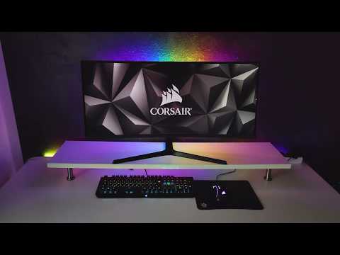 Dank iCUE Software lassen sich die LED Strips in nahezu jeder gewünschten Farbkombination einstellen. Für unseren Test haben wir die zwei weiteren langen und kurzen Streifen an der hinteren Tischkante angebracht, um das Farbspiel zu intensivieren. Die Farben leuchten angenehm hell und besitzen eine gute Sättigung. Hat man die Hintergrundbeleuchtung ein Mal eingeschaltet, möchte man sie nicht mehr missen.