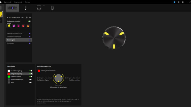 | Besonderheiten | Software: iCue TKL Drehknopf |