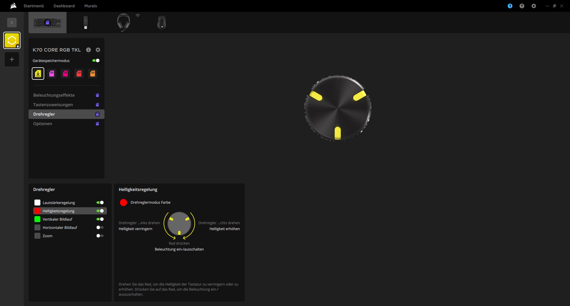 | Besonderheiten | Software: iCue TKL Drehknopf |