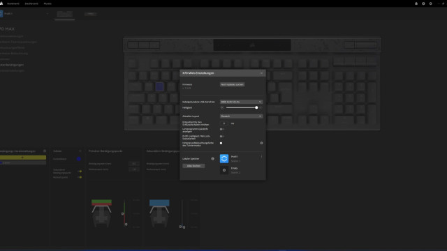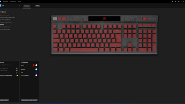 Sobald wir die Tastatur ausgewählt haben, können wir beginnen, unsere Tastatur anzupassen. Dazu stehen uns ein Hardware- und ein Softwareprofil zur Verfügung. Während das Softwareprofil die Einstellungen direkt von iCUE auf die Tastatur überträgt, dient das Hardwareprofil dazu, seine Einstellungen auch ohne Software zu nutzen. Mit CORSAIR AXON können bis zu 50 Profile auf der Tastatur gespeichert werden, die zuvor in iCUE erstellt und auf die Tastatur übertragen werden müssen.