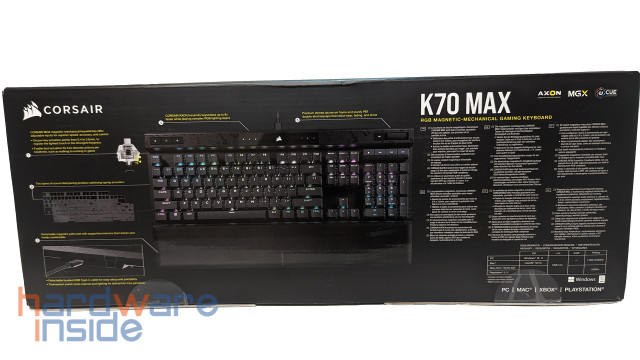 | Besonderheiten | CORSAIR MGX magnetische Switches, CORSAIR AXON, PBT Tastenkappen, Multifunktionsrolle, Multimedia Steuerung, RGB Beleuchtung mit mehreren aktiven Effekten |