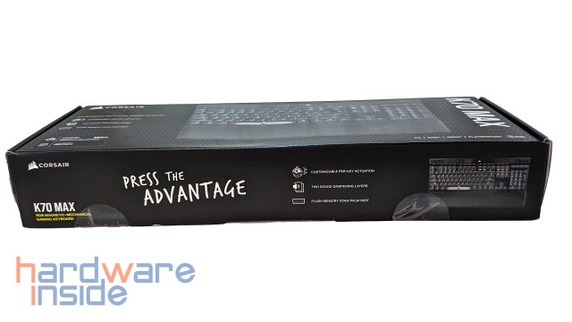 | Schalter | Typ: CORSAIR MGX, magnetisch Auslösepunkt: 2.0 mm standardmäßig | 0.4 mm – 3.6 mm, in 0.1 mm Schritten verstellbar Gesamtweg: 4.0 mm Gesamtkraft: 45 gf |