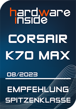 Die Corsair K70 MAX bietet gerade Gaming-Enthusiasten dank der Corsair MGX Switches ein individuelles Spielerlebnis im Full-Size-Format. Abgerundet durch eine edle Optik, PBT-Tastenkappen und dedizierte Tasten für die Multimediasteuerung, Profilwechsel sowie den Turniermodus begeistert die Tastatur auf ganzer Länge. Über die Lautstärke der Tasten lässt sich streiten, dennoch ist die Akustik gelungen und die Tasten geben einen satten Klang ohne störenden Nachhall ab. Abgerundet wird das Ganze durch iCUE und CORSAIR AXON, die uns diverse Vorteile wie eine Pollingrate von bis zu 8.000 Hz, die verschiedenen Lichteffekte, die gleichzeitig laufen können und viele weitere Einstellungsmöglichkeiten sowohl Software- als auch Hardwaregebunden bieten. Auch für lange Spielsessions ist durch die magnetische Handballenauflage gesorgt, welche mit Memory Foam für dauerhaften Komfort sorgt. Die Corsair K70 MAX macht alles richtig und ist eine Empfehlung wert.