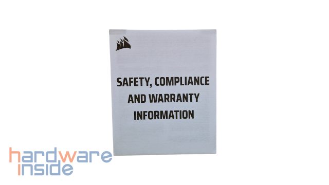 Die Verpackung ist in den typischen CORSAIR-Farben schwarz-gelb gehalten und bereits die Vorderseite illustriert die AIO mit dem oberhalb aufgedruckten CORSAIR-Logo. Die Rückseite besitzt einen schwarzen Hintergrund und fünf Symbole informieren über die Features und das in acht unterschiedlichen Sprachen.
