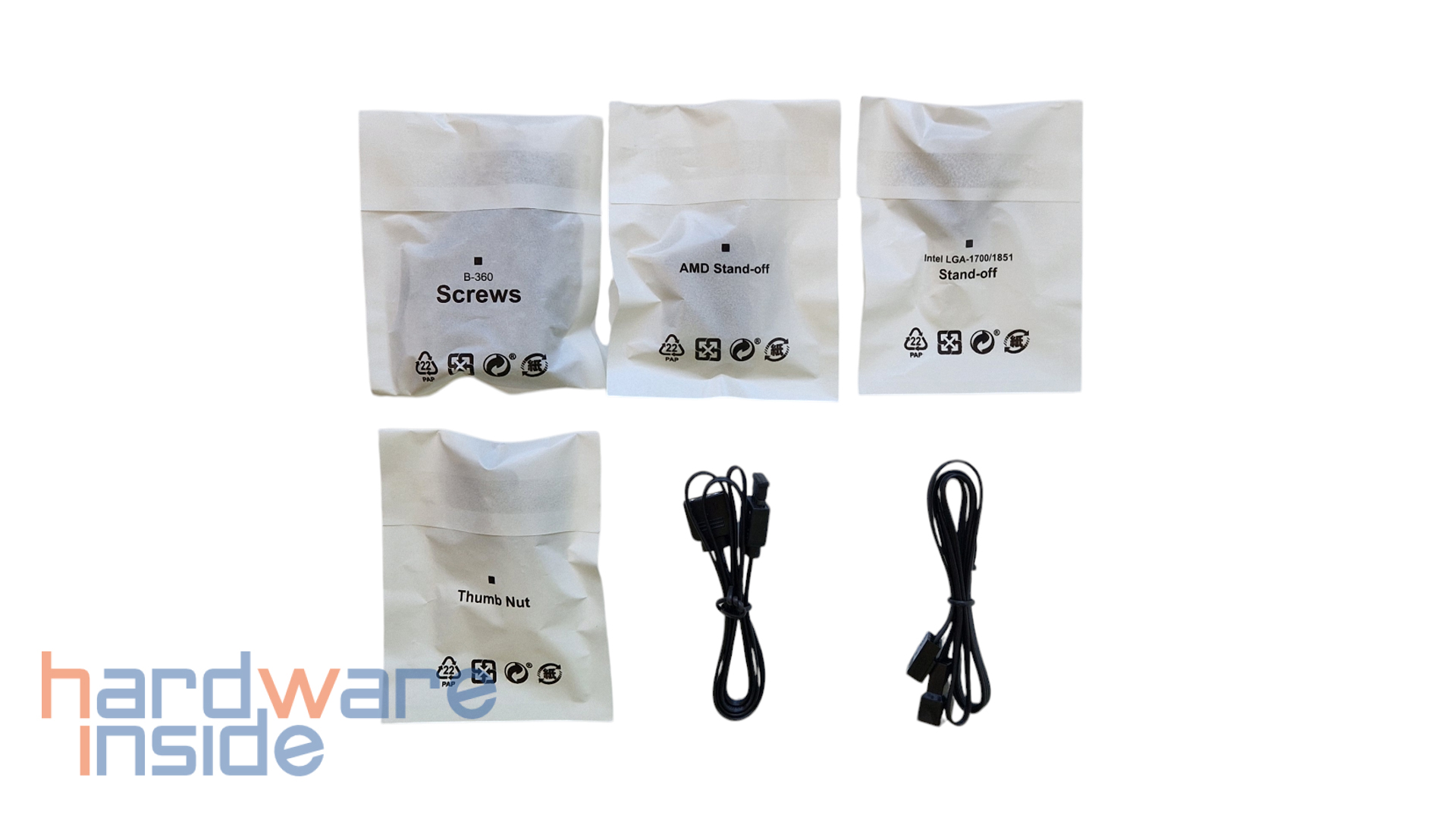 Neben der NAUTILUS 360 RS ARGB, die sicher in zwei Plastikbeuteln verpackt ist, wird der Radiator zusätzlich von einer Kartonage geschützt. Alle drei 120RS-Lüfter sind zudem einzeln verpackt. Außerdem kommt noch das folgende Zubehör, welches in mehreren kleinen Tüten verpackt ist: