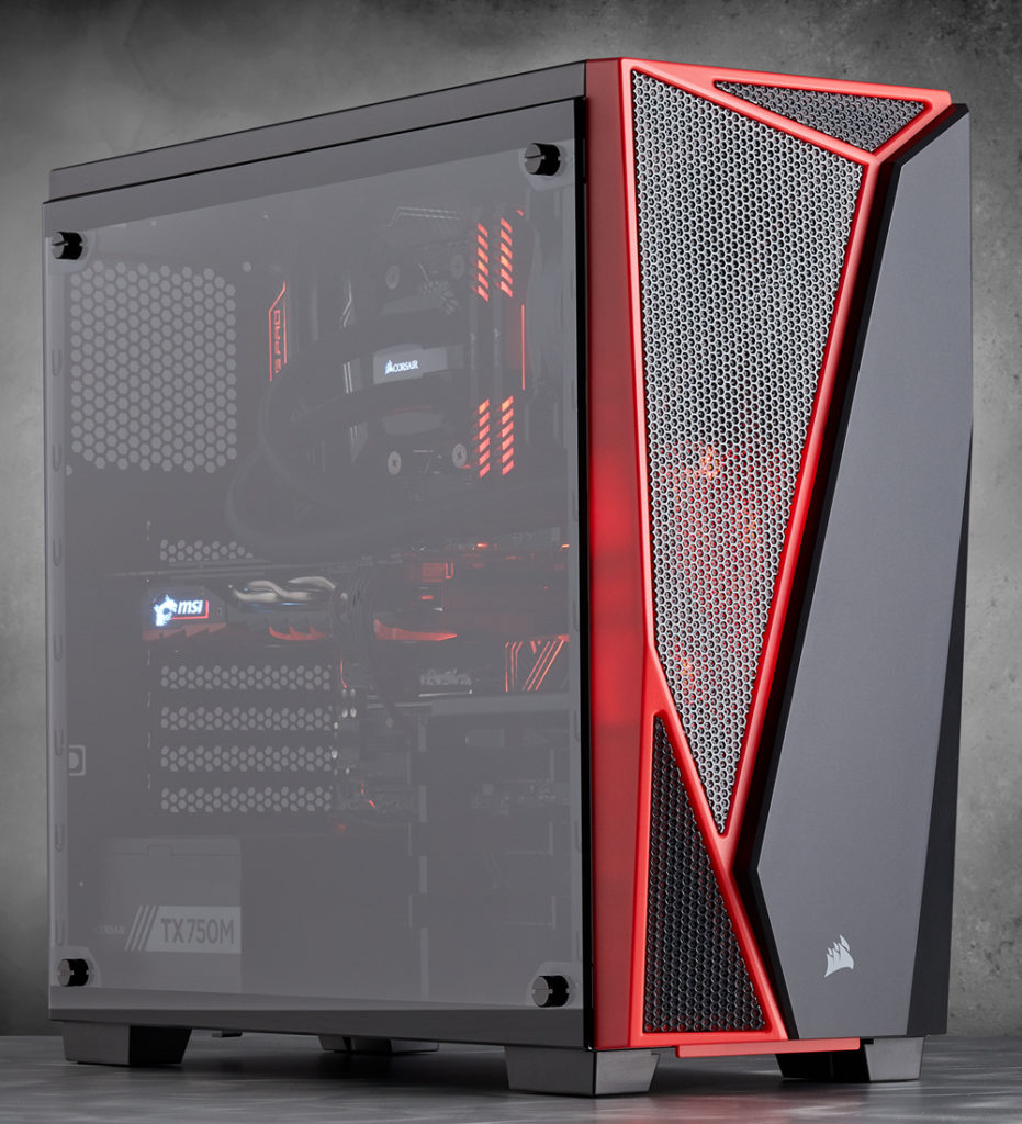 FREMONT, Kalifornien/USA – 26. Oktober 2017 – CORSAIR®, ein weltweit führender Anbieter von Speicherlösungen, leistungsfähiger Gaming-Hardware und PC-Komponenten für PC-Enthusiasten, hat heute das neue Carbide Series SPEC-04 Tempered Glass-Gehäuse vorgestellt. Das kantige asymmetrische Design und die modernen Funktionen des SPEC-04 wurden mit einer großen Seitenabdeckung aus gehärtetem Glas um Stil und Eleganz erweitert. Das SPEC-04 bietet alles, was Enthusiasten für den Bau eines großartigen Gaming-PCs benötigen. Die große Seitenabdeckung aus gehärtetem Glas gewährleistet einen ungehinderten Blick in das Gehäuse und bietet die perfekte Plattform, Ihre Komponenten ins beste Licht zu rücken. Gleichzeitig stellt das CORSAIR Direct Airflow Path-Design sicher, dass die heißesten Komponenten Ihres PCs den Luftstrom erhalten, der für ihre Kühlung erforderlich ist.