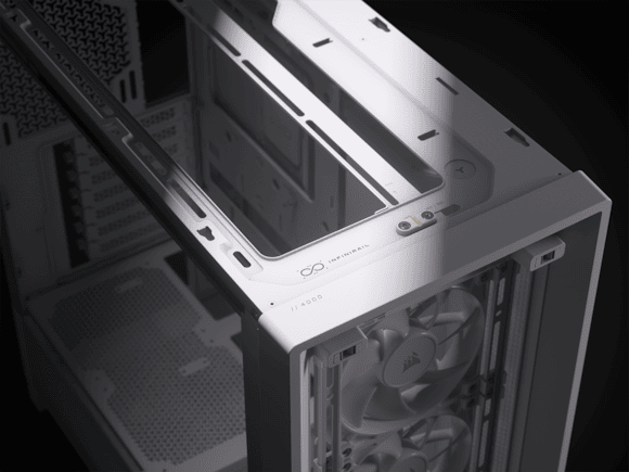 Die FRAME 4000D Series verfügt außerdem über das CORSAIR InfiniRail-Lüfterhalterungssystem, das eine beispiellose Flexibilität bei der Konfiguration Ihrer Kühlung bietet, einschließlich der Unterstützung von bis zu 200mm-Lüftern an der Vorderseite und 140mm-Lüftern an der Oberseite. Dieses System optimiert die Kühlleistung, indem es größere Lüfter, wie z. B. iCUE LINK RX140 RGB-Lüfter, unterstützt, ohne den Luftstrom durch einschränkende Befestigungspunkte zu behindern. Das FRAME 4000D unterstützt zwei 360mm-Radiatoren und bietet damit eine enorme Kühlung für Hochleistungssysteme. Mit drei Montagepositionen für den Radiator – an der Vorderseite, Oberseite und der Seite – und einer Airflow-Abdeckung mit 3D-Y-Muster an der Vorderseite gewährleistet das Gehäuse eine effiziente Kühlung, damit die Komponenten auch bei anspruchsvollen Gaming-Sessions reibungslos laufen.
