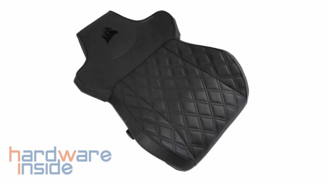 Dem Corsair TC500 LUXE Gaming-Stuhl wird mit dem Nacken- bzw. Kopfkissen das I-Tüpfelchen aufgesetzt. Das Kissen hat in der Rückseite zwei magnetische Streifen und kann an metallischen Oberflächen haften. Durch den Korpus aus Stahl, haftet das Kissen demnach großzügig auf dem oberen Teil des Stuhls. Abgesehen davon besitzt das Kissen Memory Foam und ist wirklich bequem.