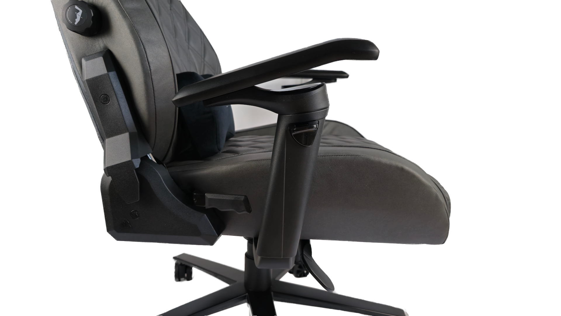Die Omniflex Armlehnen haben eine angenehme, weiche und gepolsterte Oberfläche. Neben der Verstellung nach Oben und nach Unten, zu den Seiten Links und Rechts mit Hilfe der Schrauben an der Unterseite der Sitzfläche, können die Armlehnen auch um 215° gedreht werden. Diese Drehung führt zu einer besonderen Position, da die Armlehnen bei 180° tief nach Unten geneigt werden. Hat man sich erst ein Mal an diese Position gewöhnt, versteht man den Gedanken als bequeme Sitzart für Gamer, die mehr mit dem Controller als mit der Tastatur vertraut sind.