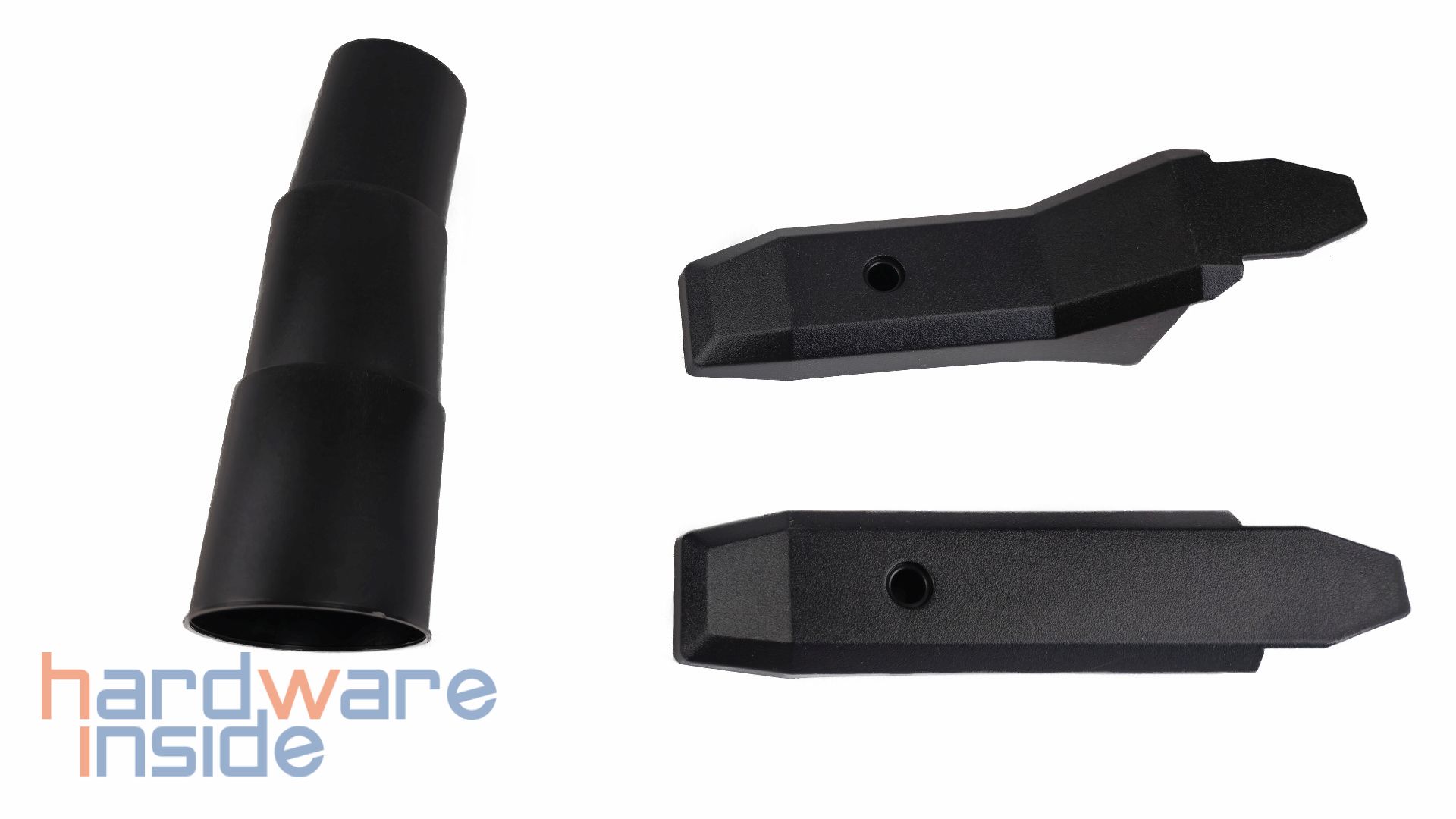 Auf das Fußkreuz setzen wir die Gasfeder samt der Kunststoffabdeckung aus drei Teilen auf. An der Unterseite des Sitzes befestigen wir mit vier Schrauben und dem Inbus-Schlüssel den Kippmechanismus und setzen dies auf die Gasfeder auf. Anschließend nehmen wir die Rückenlehne und rasten diese auf die Verbindung mit der Sitzfläche ein. Diese Rastung an der rechten Seite des Stuhls vereinfacht die Montage des TC500 immens, sodass keine zweite Person helfen muss, was wir als positiv hervorheben möchten. Schließlich werden noch die beiliegenden Kunststoffabdeckungen mit den zugehörigen Schrauben montiert und mit kleinen Clips mit Corsair-Logo abgedeckt. Als letztes nehmen wir das Kissen und hängen dieses magnetisch an den Kopfteil des LUXE.
