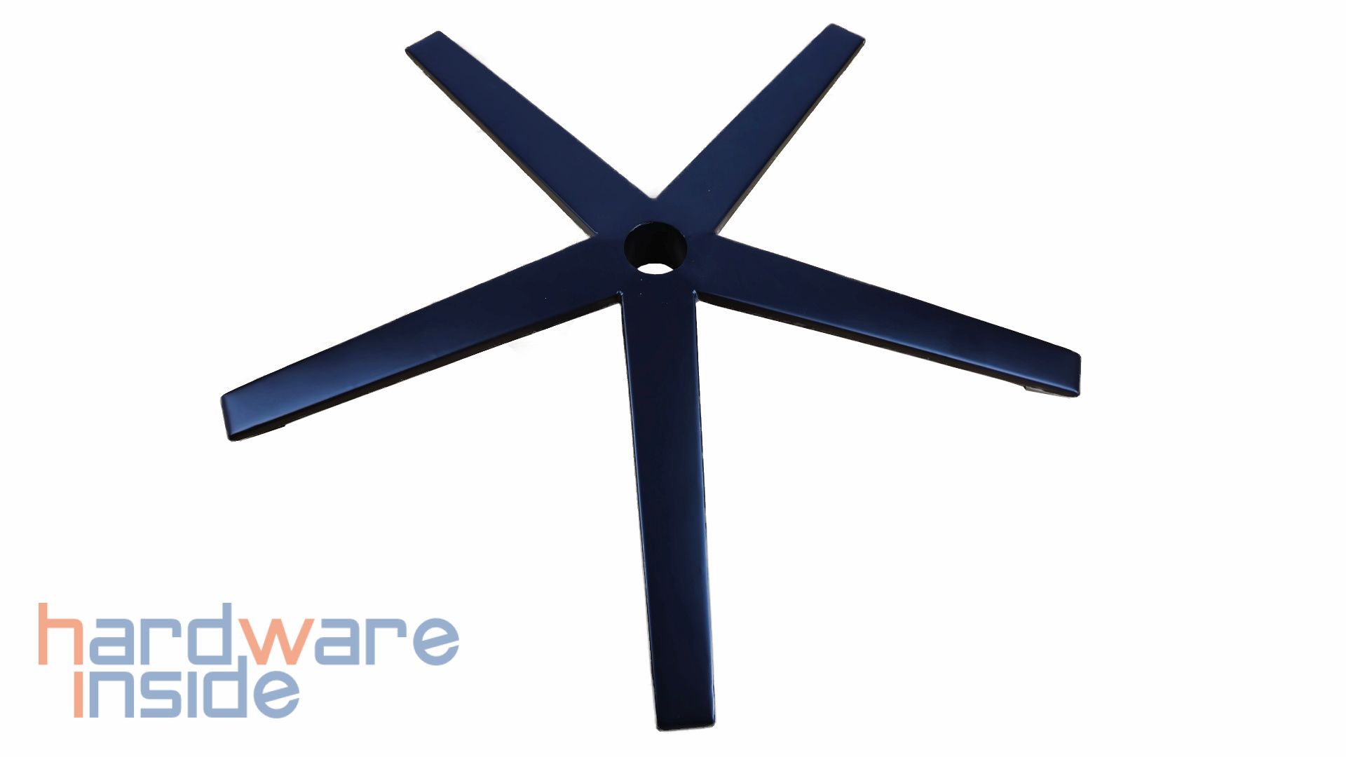 Der Aufbau ist intuitiv und es ist nicht unbedingt eine Anleitung vonnöten, wir gehen trotzdem einmal von Vorn bis Hinten durch. Zuerst nehmen wir das Fußkreuz in Sternform, das aus Aluminium in Schwarz gefertigt ist, zur Hand. An der Unterseite verbinden wir die fünf Räder aus Kunststoff, die werkzeuglos in das Fußkreuz gesteckt werden können. An diesem Punkt drehen wir das Fußkreuz um, was auf dem Untergrund selbst aber noch nicht fährt, da nicht ausreichend Gewicht und Kraft als Belastung vorhanden sind. Das sorgt für einen standfesten Halt bei der Nutzung des Corsair TC500 LUXE Gaming-Stuhls gegen ungewollte Bewegung.