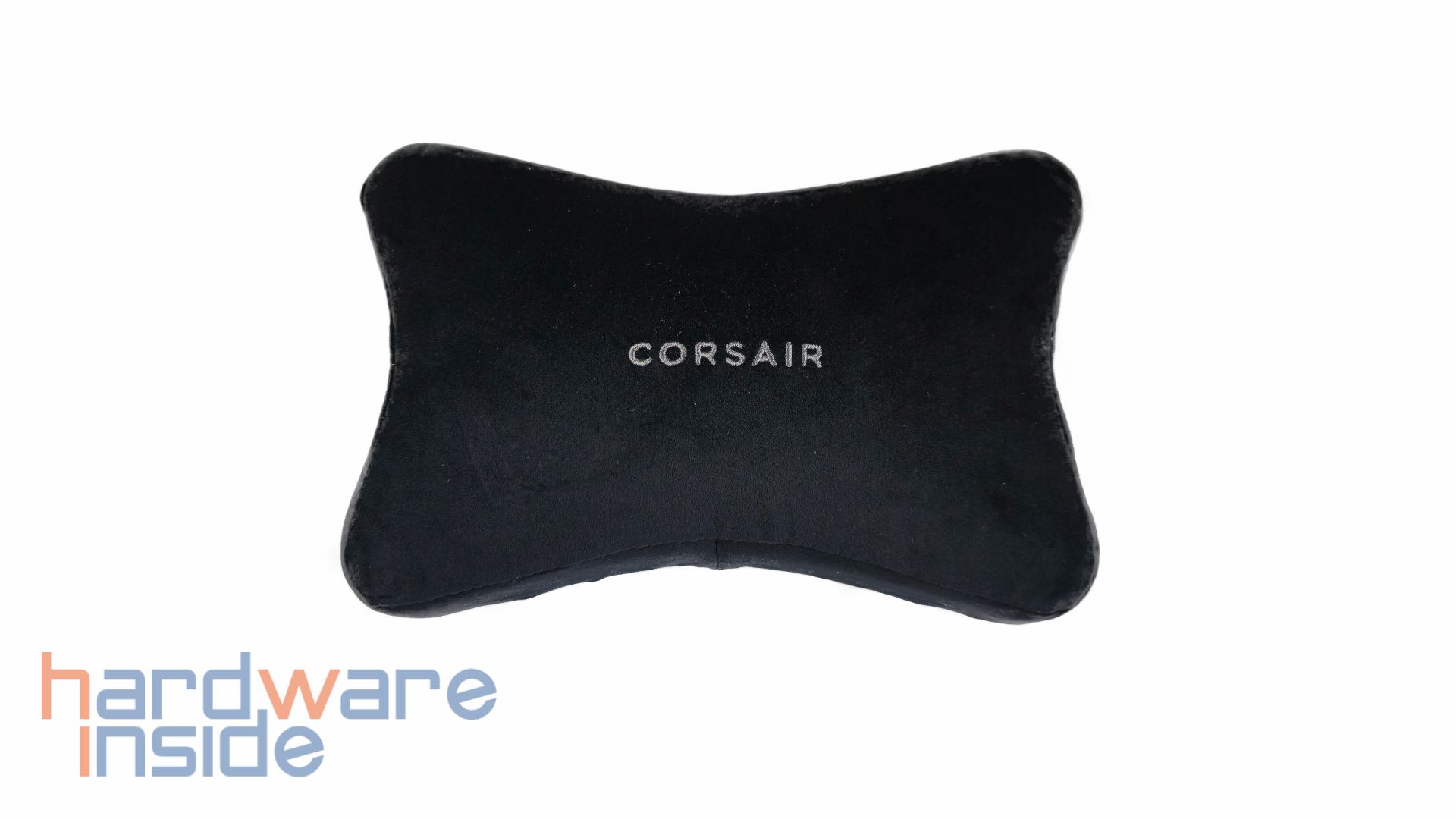 Dem Corsair TC500 LUXE Gaming-Stuhl wird mit dem Nacken- bzw. Kopfkissen das I-Tüpfelchen aufgesetzt. Das Kissen hat in der Rückseite zwei magnetische Streifen und kann an metallischen Oberflächen haften. Durch den Korpus aus Stahl, haftet das Kissen demnach großzügig auf dem oberen Teil des Stuhls. Abgesehen davon besitzt das Kissen Memory Foam und ist wirklich bequem.