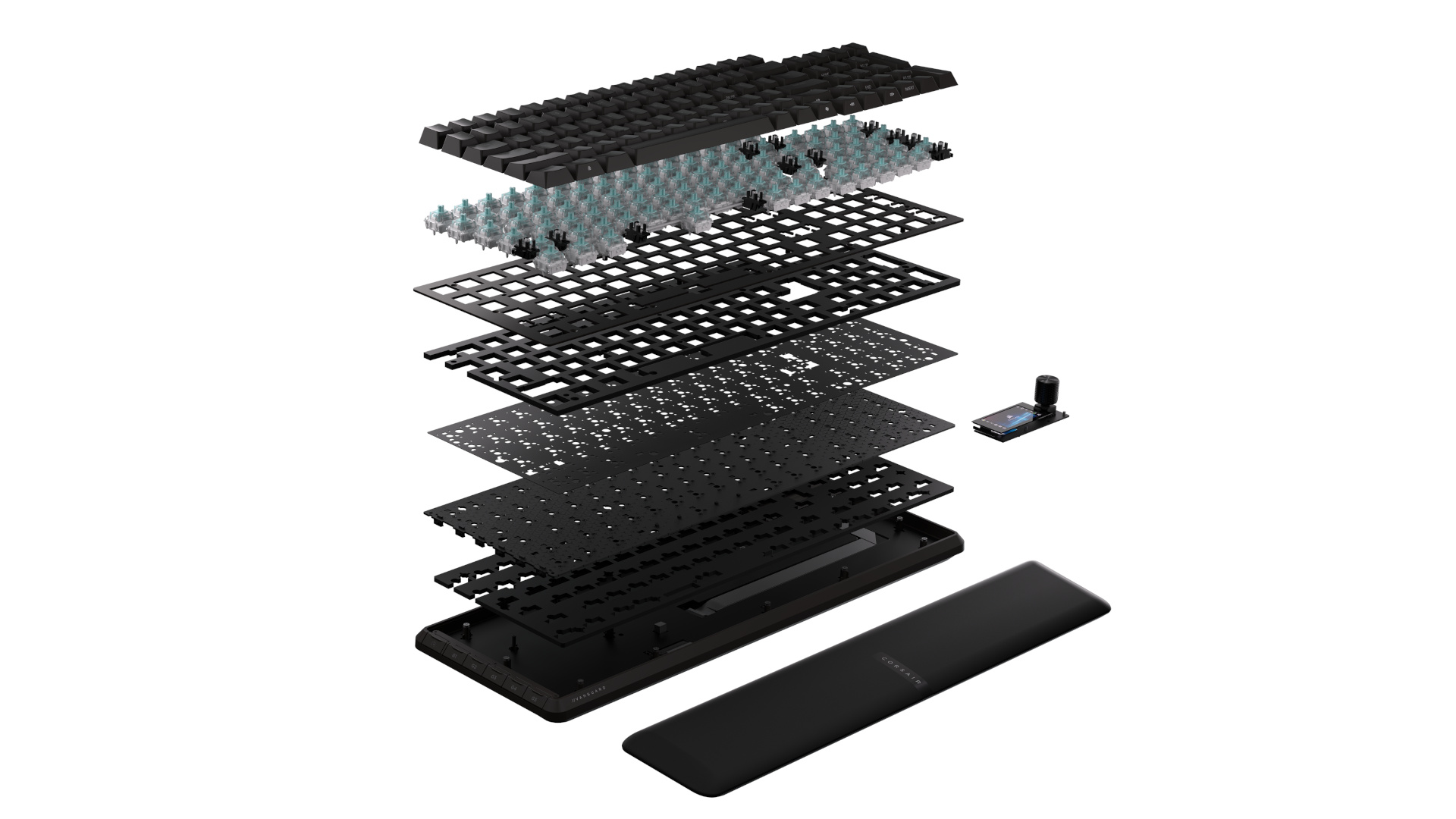 | Keyswitches | linear; vorgeschmiert; CORSAIR MGX-Tastenschalter; Betätigungskraft 45 g; Betätigungsweg: 1,9 mm; Gesamtweg: 4,0 mm; 80 Millionen Tastenschläge garantiert |