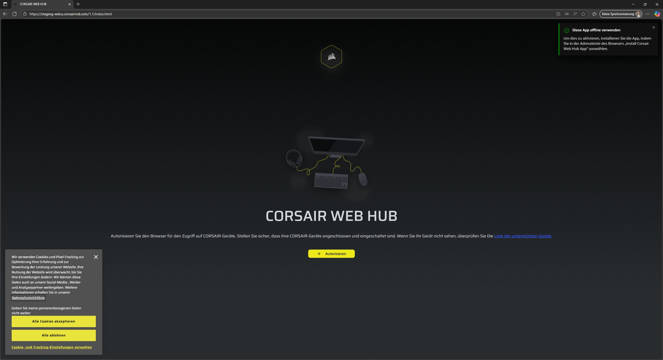 Das CORSAIR WEB HUB wird derzeit offiziell leider nur von drei Browsern unterstützt – Google Chrome, Microsoft Edge und Opera. Wird die WEB HUB Adresse angewählt, erscheint ein Popup mit der Meldung iCUE auf dem Computer zu beenden, falls das Programm läuft. Im nächsten Schritt kann das entsprechende Gerät über den Browser autorisiert und anschließend darauf zugegriffen werden. Falls das Gerät ein Update erhalten soll, kann eine weitere Website besucht und mit dem gleichen Vorgehen eine neue Firmware aufgespielt werden, wobei alle Schritte genau beschrieben werden.