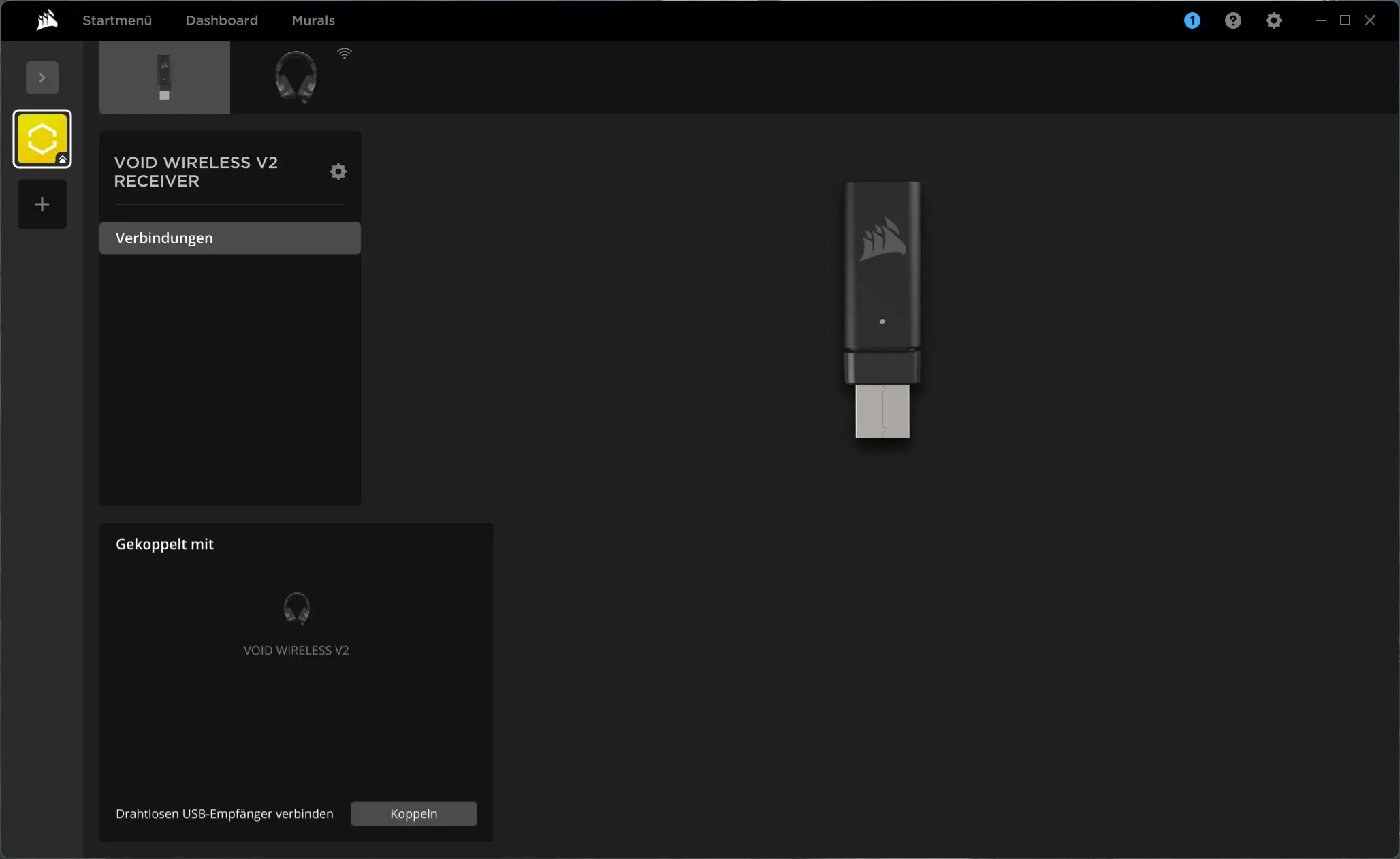 Die Verbindung über den USB-Adapter ist in der Praxis noch einfacher, wir schließen den Adapter an einen PC an und starten das Headset, schon ist die Verbindung hergestellt und die Tonübertragung läuft. Wir installieren die iCUE Software, die wir im Folgenden vorstellen möchten.