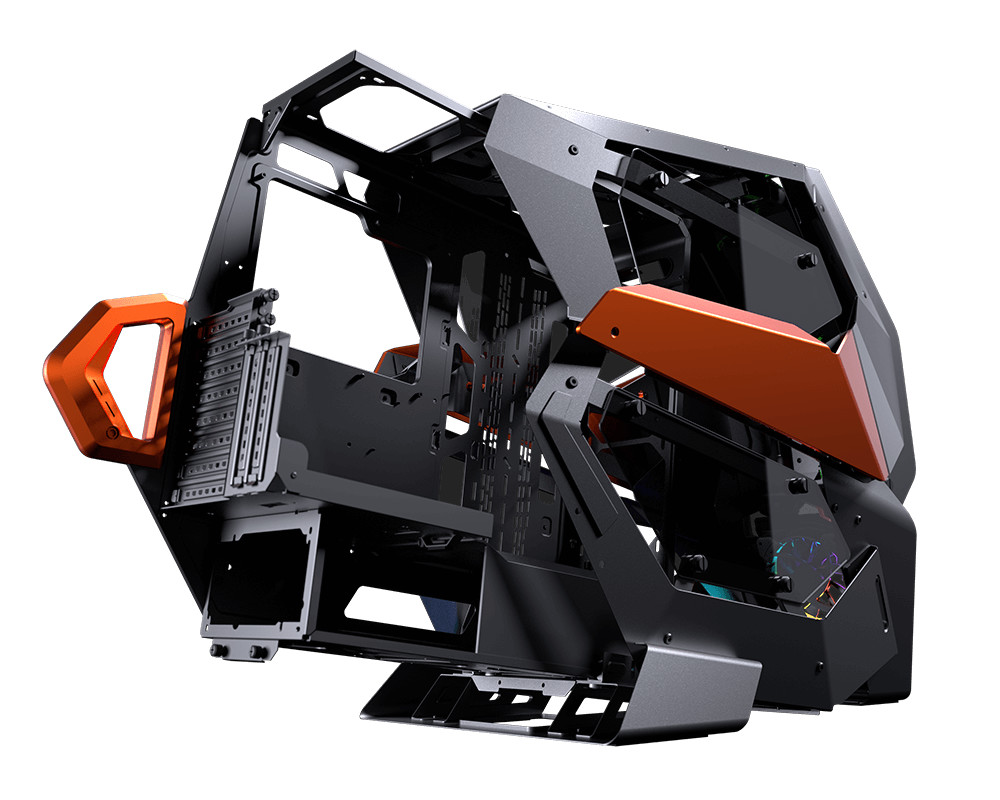 Cougar präsentierte heute das Conquer 2, ein hochwertiges ATX Full-Tower-Case, das Cougar auf der Computex 2019 vorstellte. Es verfügt über ein „Chassis im Chassis“-Design, bei dem ein inneres SECC-Stahlgehäuse alle Ihre Komponenten aufnimmt und in das äußere Chassis gleitet, welches das industrielle Design des Gehäuses aufweist, das Aluminium- und Hartglasscheiben kombiniert. Massive ARGB LED-Diffusoren dominieren den vorderen Teil. Das innere Gerüst hat ein horizontal geteiltes Layout. Das obere Fach hat die Hauptplatinenablage mit Platz für CEB, ATX und kleinere Mainboard-Formfaktoren. Sie erhalten Platz für Grafikkarten bis zu einer Länge von 40 cm. Es gibt insgesamt 10 Erweiterungssteckplätze, von denen zwei vertikal sind.