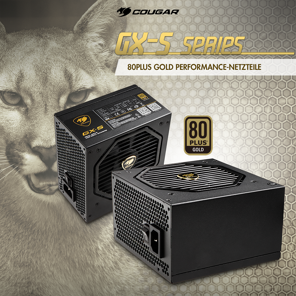 Berlin, 26.07.2016 – Cougar erweitert das Netzteil-Segment und präsentiert mit der GX-S Serie erstklassige Technik gepaart mit hoher Effizienz. Die GX-S-Serie richtet sich an Nutzer, die keine Kompromisse in Bezug auf Leistung, Style oder Effizienz machen möchten, aber über ein begrenztes Budget verfügen. So kombiniert der Hersteller moderne Technik mit 80-Plus-Gold-Effizienz, einem leisen Lüfter und unauffälligen komplett schwarzen Sleeve-Kabeln mit einer Vielzahl an Anschlüssen für moderne Gaming-PCs. Mit 450 bis 750 Watt Nennleistung deckt Cougar dabei den gesamten Leistungsbereich vom sparsamen Oberklasse-System mit einer einzelnen Performance-Grafikkarte bis zu SLI- und Crossfire-Verbünden ab. Jetzt bei Caseking bestellen.