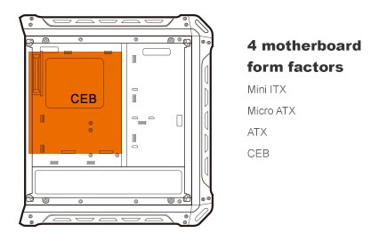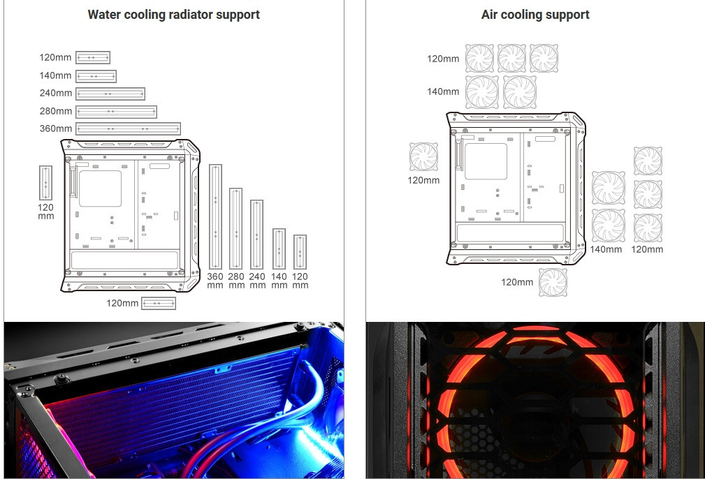 Das PANZER-G ist ziemlich gut bestückt, wenn es um zusätzliche Ventilatoren und Kühlerhalterungen geht, und hat die erwarteten Freiräume für High-End-PC-Innenräume (ATX-Motherboards bis zu 267 mm Tiefe, GPUs bis zu 400 mm Länge, Standard) ATX-Netzteile, 2x 3,5 „und 4x 2,5“ Einschübe).