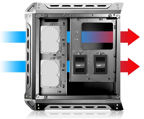Es ist eine Mischung aus industriellem Glas, Schrauben und Aluminiumrahmen, die wirklich gut zusammenpasst, und die Frontglasscheibe und das neue Vortex Ventilator-LED-Design verleihen dem PANZER-G eine gedämpfte, aber dennoch augenfällige Ästhetik.
