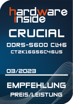 Crucial liefert mit seinen neu veröffentlichten DDR5 UDIMMs eine preisgünstige Alternative für alle gängigen Mainboards. Sowohl das DDR5-5200 CL42, als auch das DDR5-5600 CL46 Kit liegen bei knapp 160 €, doch lassen sich gerade bei den DDR5-5600 UDIMMs derzeit echte Schnäppchen ergattern, was sie zu wahrhaftigen Preis-/Leistungs-Killern macht. Dafür werden die Module jedoch ohne passive Kühlung oder RGB-Beleuchtung ausgeliefert. Wer also eine gute Gehäusekühlung für OC hat und auf Beleuchtungseffekte verzichten kann, kann mit den Crucial DDR5-5200 und DDR5-5600 einen tollen Budget-Build kreieren.