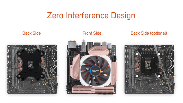 Der C7 Cu baut auf der Architektur des C7 CPU-Kühlers auf, weshalb Nutzer die vielseitigen Features erwarten können, zu denen das Zero Interference Design für ausgezeichnete RAM-Kompatibilität auf sowohl Intel™- als auch AMD™-Mainboards, ein mitgeliefertes Montagetool und ein 92 mm PWM Lüfter mit Gummientkopplern zählen. Der vorinstallierte 92 mm Lüfter verwendet außerdem CRYORIG’s Quad Air Intake System, das aus aerodynamischen Einlässe in den vier Ecken des Lüfterrahmens besteht. Dadurch kann die Luft nicht nur von oben, sondern auch an den Seiten des Lüfters einströmen, was speziell bei SFF/ITX-Systemen mit limitiertem Platz zwischen CPU-Kühler und Gehäuse-Seitenteil zu einem höheren Luftdurchfluss führt.