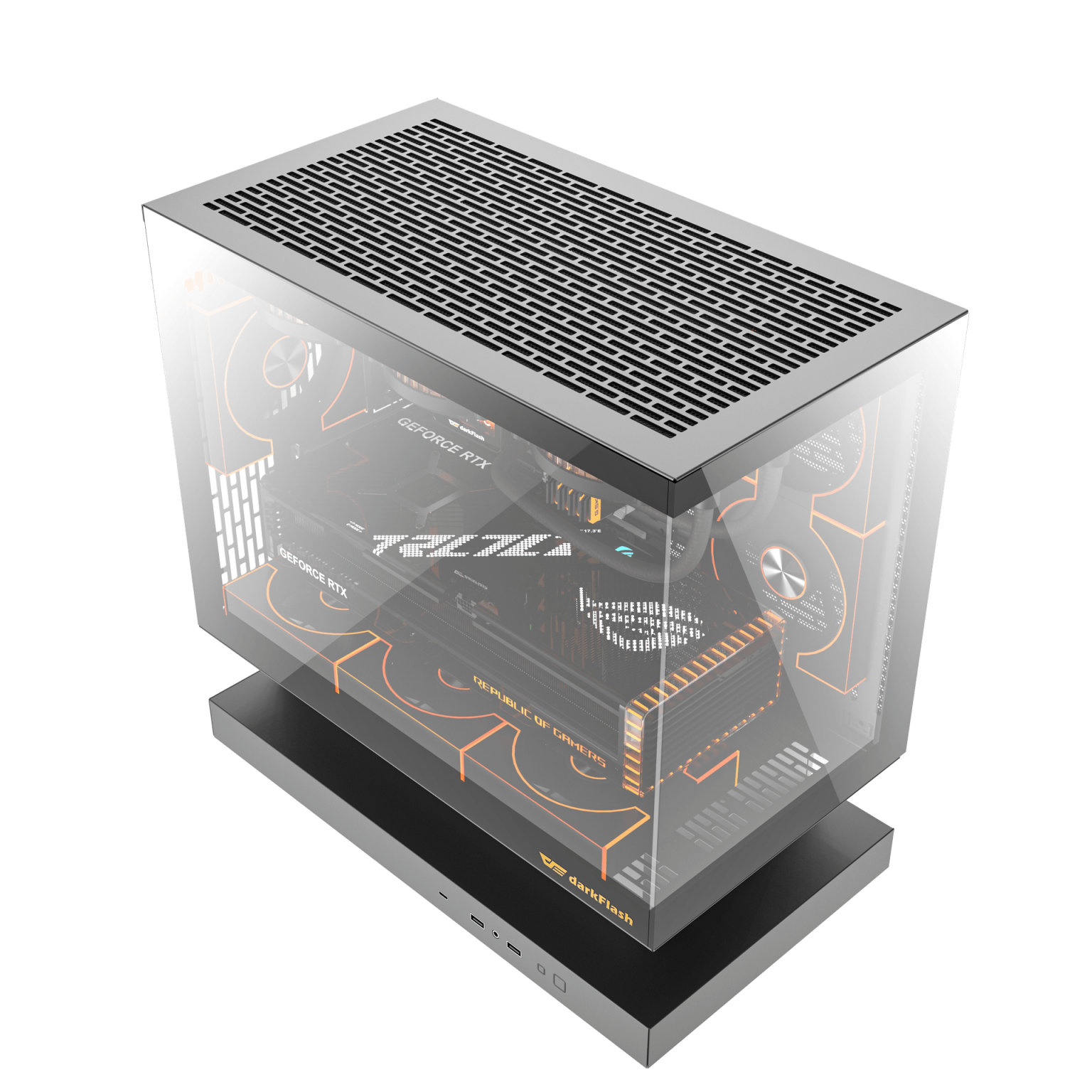 Das Front-I/O umfasst einen USB-Typ-C-Anschluss, zwei USB-3.0-Ports, HD-Audio sowie separate Power- und Reset-Tasten. Angaben zu Verfügbarkeit und Preis hat darkFlash bislang nicht gemacht.